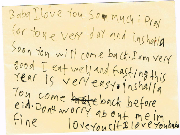"أخذونا في باص إلى (كابينات). نزلنا، دخلنا، وكانت الصدمة. كان حاجزاً زجاجياً كبيراً يفصل بيننا وبينه. الحاجز به فتحات (خروم) صغيرة جداً تسمح بمرور الصوت فقط. كأننا أمام مجرم من أولئك الذين نراهم في الأفلام والذين يتم عزلهم بسبب خطورتهم على الآخرين. كانت صدمتنا كبيرة أن يكون لقاؤنا الأول بهذه الطريقة القاسية والمهينة. رأيت وجوه أطفالي كيف بهتت حين شاهدوا هذا الحاجز أمامهم. كم كانوا متشوقين لرؤية والدهم ولمسه واحتضانه. طوال وقت اللقاء كانوا يبكون بحسرة وألم. ليس أصعب من أن تعيش العزل وأنت في كل هذه المسافة من القرب. لم يكف الجميع عن البكاء طوال اللقاء. شعرنا أن هذا اللقاء كسرنا أكثر".