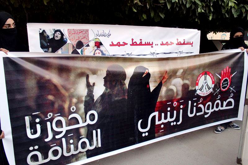 مرآة البحرين (خاص): فيما أعلن عنه أنه تمهيد للمشاركة الجماهيرية الكبرى وسط العاصمة المنامة في ذكرى عيد الشهداء في يوم الاثنين 17 ديسمبر تحت عنوان "محورنا المنامة"، كان لقرية "مقابة" يوم أمس الخميس 13 ديسمبر موعد مع مسيرة نسائية دعا لها إئتلاف 14 فبراير تحت اسم شعار"صمودنا زينبي" و"محورنا المنامة".