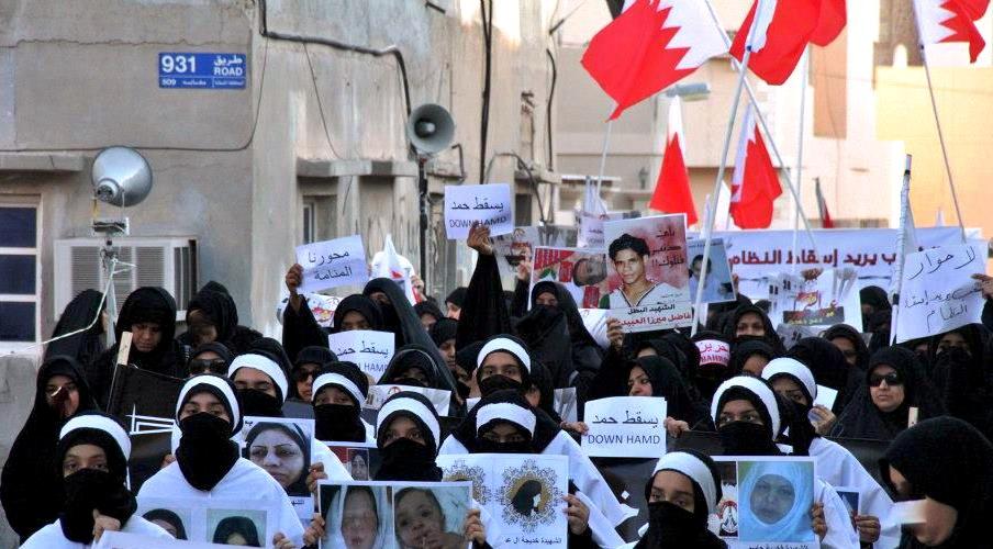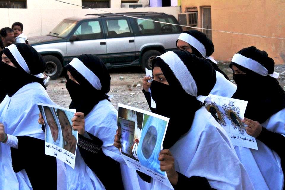حشد كبير من النسوة توافدن إلى قرية مقابة من كل مكان، بينهن أمهات الشهداء وأخواتهن أو أزواجهن وبعض الناشطات. جابت المسيرة شوارع قرية مقابة ترفع صور الشهداء رجالا ونساء وترتفع في عمقها لافتة كتب عليها "يسقط حمد"، وعلى يسار تلك العبارة طُبعت صورة المعتقلة معصومة السيد التي لازالت خلف القضبان تقضي حكما بالسجن لمدة 3 أشهر، كذلك الحقوقية المعتقلة زينب الخواجة.