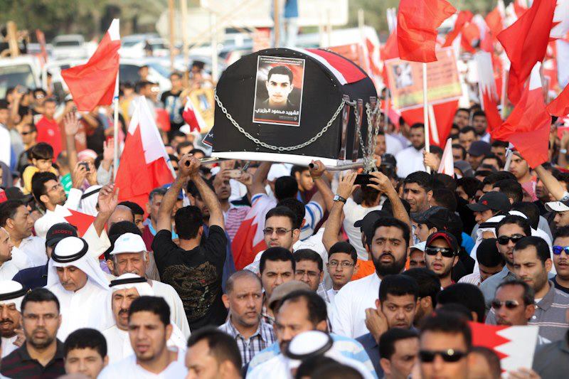 وأكد المرصد، في بيان، أن "ما يقوم به النظام من قمع للمسيرات السلمية واستهداف المتظاهرين السلمين بالقتل والاعتقال، ومن ثم احتجاز الجثامين والتحكم بأماكن الدفن والتشييع هو انتهاك صارخ لكل المعاهدات والاتفاقيات الدولية في مجال حقوق الإنسان، ويؤكد استمرار النظام بالانتهاكات الجسيمة لحقوق الإنسان في البحرين".