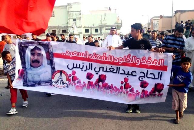 مرآة البحرين: شيع بحرينيون اليوم مواطنا ستينياً قضى في أحد مراكز الشرطة فيما كان يزور ابنه الموقوف بسبب مشاركته في احتجاجات سياسية. وشاركت حشود من المواطنين بمنطقة الدراز في جنازة الحاج عبد الغني الريس (66 عاماً) الذي توفي أمام مركز شرطة البديع اليوم ثناء تواجده للمطالبة بإطلاق سراح ابنه. ورفع المشيعون أعلام البحرين كما رددوا هتافات تندد باستمرار البطش الرسمي والتنكيل بالمواطنين.