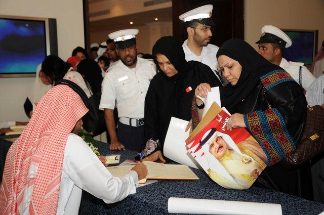 قالت "الصحافة" البحرينية إنه قد "تدفقت جموع المواطنين وكبار الشخصيات من وزراء وشوريين وبلديين للتوقيع على سيف الولاء، في حفل أقيم في شركة ديباج للسيوف والخناجر بتنظيم من عائلة الصايغ".