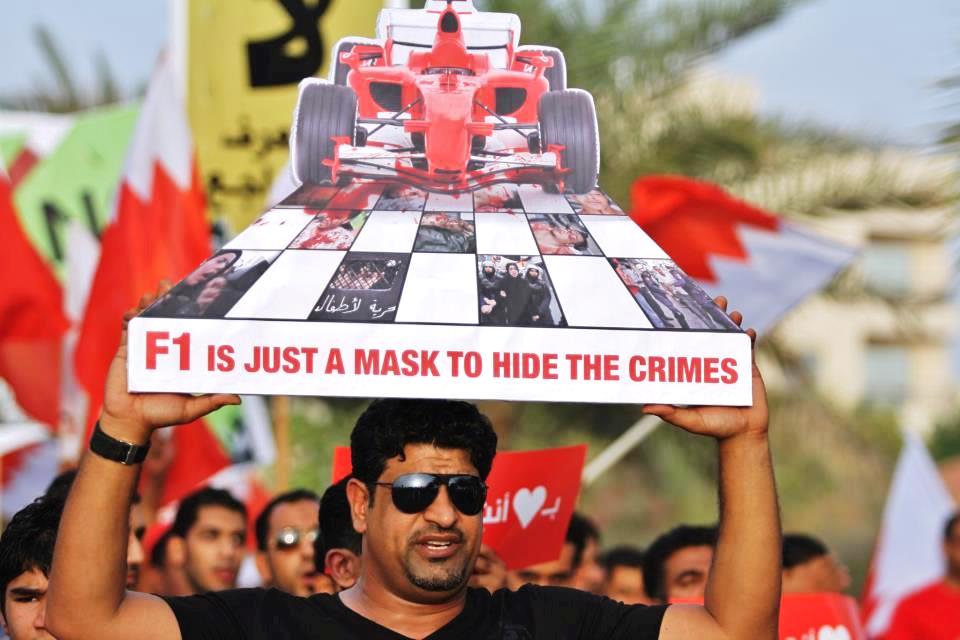 فضلا عن ذلك، لا يشعر الكثيرون من أبناء الوطن إنهم معنيون بالفورمولا واحد، لأنها تلمع أمام العالم صورة نظام قمعي، وقد تكون المسيرات السلمية والفعاليات الاحتجاجية ضد إقامة السباق في البحرين ردت فعل طبيعية على تزوير الوقائع واستخدام الرياضة كقفازات بيضاء تغطي أياد ملوثة بدماء الأبرياء!