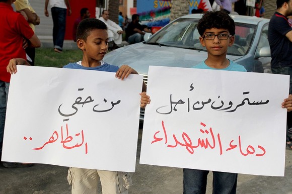 "أي ديموقراطية وحرية تلك التي تعتقل الأطفال وتجرمهم لمجرد تعبيرهم عن رأيهم ثم تحرمهم من أبسط حقوقهم في العلم ومواصلة مسيرة النباهة العقلية، ومحاولة ممارسة عملية الاستحمار التي نجحت على شريحة لا يستهان بها من الشعب البحريني بدواعي مذهبية وقبائلية؟"