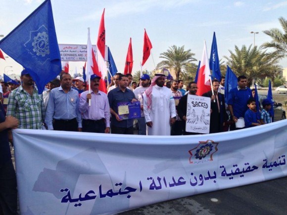 مرآة البحرين (خاص): شهدت البحرين عصر أمس الأربعاء مسيرات حاشدة في عدد من المناطق أبرزها مسيرة الاتحاد العام لنقابات عمال البحرين والجمعيات السياسية المعارضة التي خرجت من مدرسة كانو بسلماباد إلى وزارة العمل بمناسبة اليوم العالمي للعمال تحت شعار: لا تنمية حقيقية بدون عدالة اجتماعية".