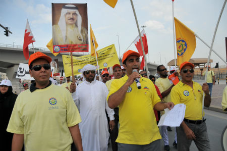 في 1 مايو يخرج العشرات ضمن مسيرة عيد العمال المنظمة من قبل (الاتحاد الحر)، الذي صُنع من قبل النظام برئاسة علي البنعلي رئيس نقابة ألبا سيئة الصيت، بهدف ضرب (الاتحاد العام لنقابات عمال البحرين). وذلك بعد فضح الأخير، عمليات الفصل الممنهجة لأسباب سياسية خلال أحداث فبراير 2011، وبقاء هذا الملف مفتوحاً رغم توصيات بسيوني.