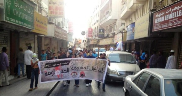 يذكر أن السلطة تفرض حظرا على التظاهر في العاصمة المنامة منذ أن اجتاحت قوات دوار اللؤلؤة مارس 2011، لكن المحتجين يصرون على تنظيم التظاهرات هناك بشكل مستمر.