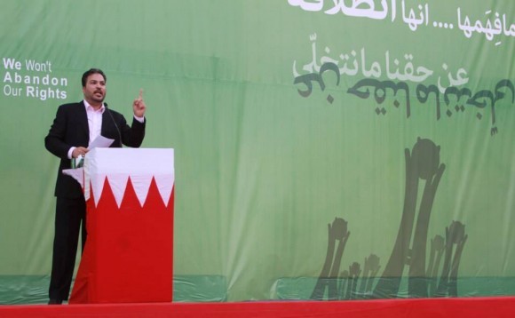 وأكد خلال التجمع الجماهيري للمعارضة عصر أمس الجمعة في منطقة الدير بمحافظة المحرق شرق العاصمة المنامة رفض المعارضة البحرينية أن يكون الملك رئيسا للسلطة القضائية.