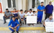 مجموعة من عمال إحدى الشركات يعتصمون مع أبنائهم للمطالبة بصرف رواتبهم المتأخرة 4 أشهر