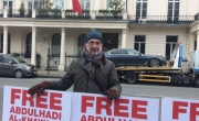 اليوم، انضممت إلى الاحتجاج الذي نظمته فرونت لاين ديفندرز أمام السّفارة البحرينية في لندن للدّعوة إلى الإفراج عن المدافع [البحريني] عن حقوق الإنسان عبد الهادي الخواجة، السّجين الذي عُذِّب وحُكِم عليه بالسّجن مدى الحياة من قبل محكمة عسكرية منذ سبعة أعوام مضت.